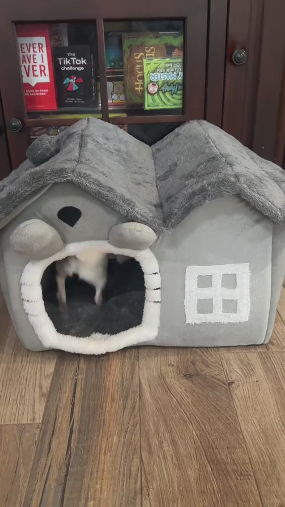 Stylish cartoon pet house bed for cats and small dogs. Soft, cozy, and foldable, designed for sleeping, lounging, or retreating in comfort.