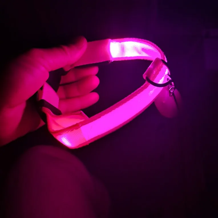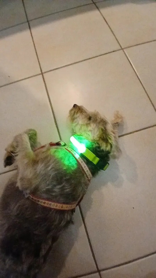 Adjustable LED Dog Harness in nylon for small, medium, and large dogs. Provides night safety with glowing LED lights, 3 lighting modes, and comfortable padded straps for all-day wear. Perfect for walks, jogging, and outdoor activities.